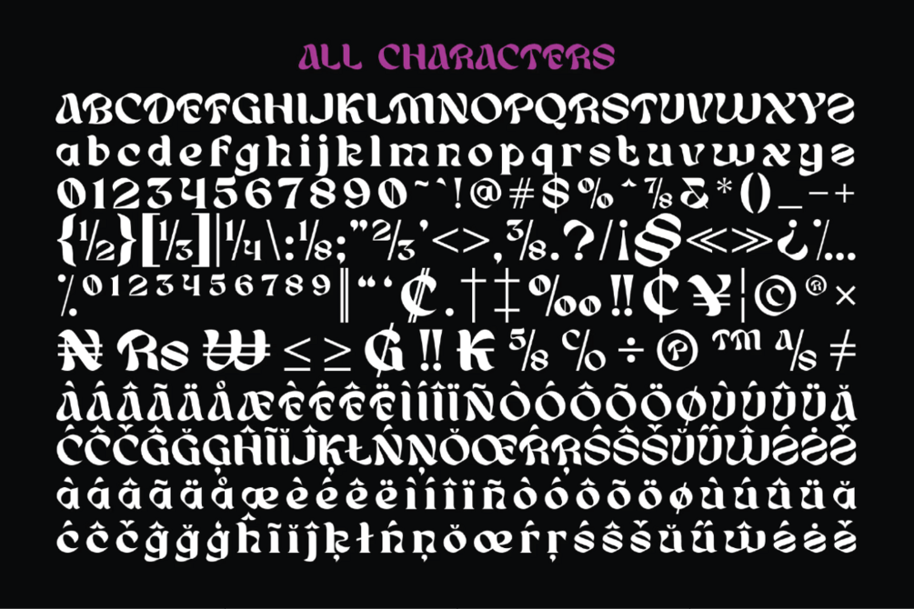 This font is PUA encoded which means you can access all glyphs with ease!